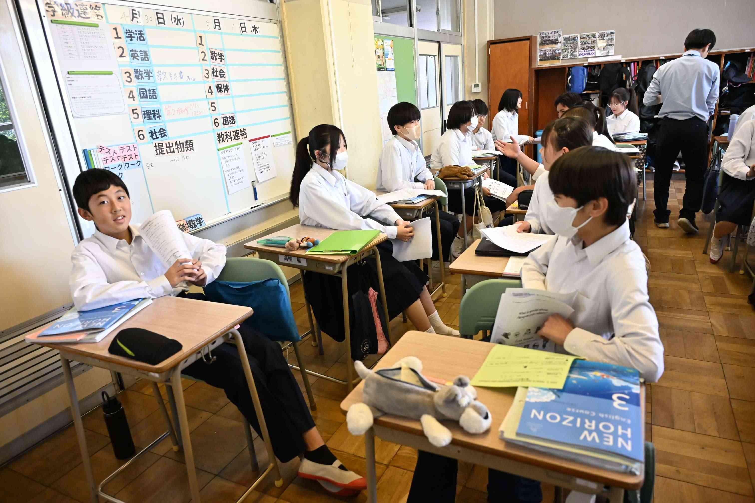 4校時。3年6組は、熱心に英文の読み取りをしていました。